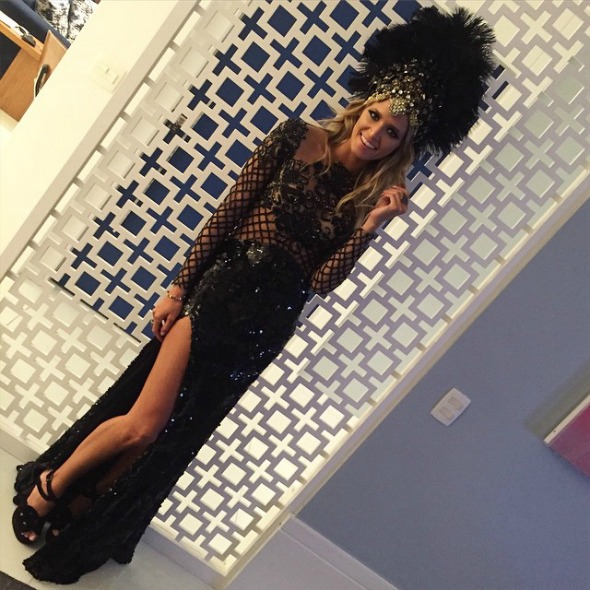 Look de Helena Bordon no lançamento da coleção, ontem, em shopping de São Paulo – Crédito: Reprodução do Instagram