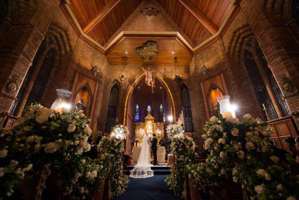 Absolutamente linda! O altar dourado faz brilhar os olhos de qualquer noiva apaixonada!