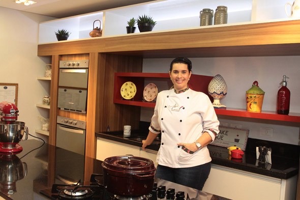 Anna Corinna na cozinha montada para gravar seu programa na TV Tribuna. Crédito: Nando Chiappetta/DP/D.A Press