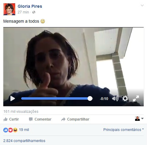 Depois de virar meme na internet, com seus breves comentários na apresentação do Oscar, a atriz Glória Pires postou vídeo comentando sobre a repercussão nas redes sociais. Deixou claro que adorou os memes e achou-os supercriativos. No entanto, fez questão apenas de esclarecer que tinha sim assistido a maioria dos filmes, a exceção de curtas e animações. “Eu não poderia ter ido a uma festa daquelas sem ter visto os filmes”, desabafou. Calma e descontraída, ela terminou o vídeo tranquilizando os fãs de que não estava doente. “Ao contrário. Estou ótima”.
