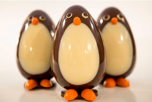 A aposta da chocolatier Anna Corinna é o ovo escultura em formato de Pinguim. É feito com chocolate 70% cacau e recheio ganache de praliné de avelã e amêndoas. A coleção dela conta com mais de 15 itens.