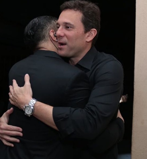 Amizade: O abraço do produtor Augusto Acioli, que idealizou a turnê do cantor Belo nos teatros do Brasil – Crédito: Luiz Fabiano/Divulgação