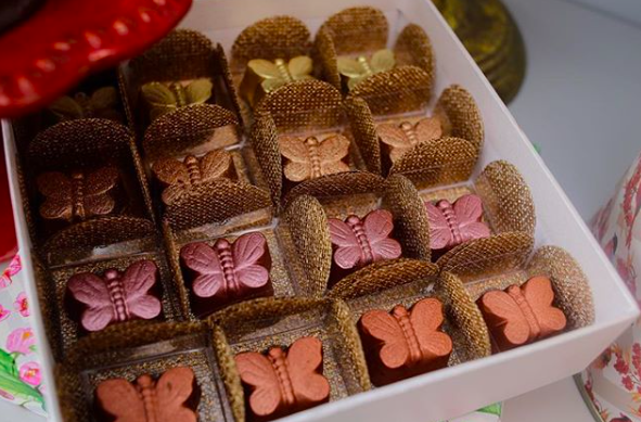 Os chocolates Sakura (formato de flor) e Borboleta seguem alguma tendência por terem um aspecto metalizado?
