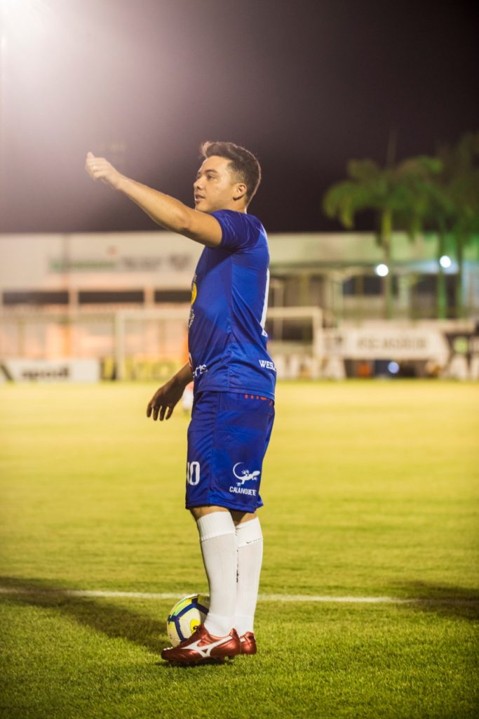 Nessa semana, o cantor Wesley Safadão se reuniu, em Fortaleza, com amigos para uma partida de futebol. Amante do esporte, o artista dividiu o gramado com parceiros que conviveu durante a infância e adolescência. A brincadeira entre os times Calanguete e Swing já virou tradição e acontece desde 2009. A nona edição do jogo teve patrocínio da Marjo Sports e apoio do Ceará Sporting Club. O Calanguete, capitaneado por Safadão, venceu o Swing por 2 a 1.