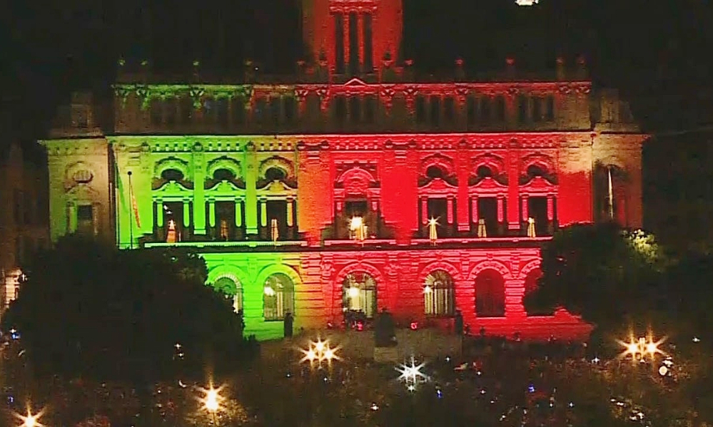 A Prefeitura il8uminada para comemorar a conquista da Taça das Nações
